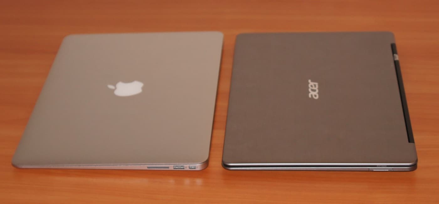 Aspire S3 использует экран 16:9, а MacBook Air — 16:10, т. е. экран у MacBook чуть короче по горизонтали и чуть больше по вертикали. Поэтому у ноутбуков разные пропорции корпуса.