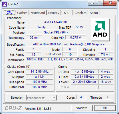 | Процессор | AMD A8-3510MX | AMD A6-3400M | Core i3-2330M | AMD A10-3600M |