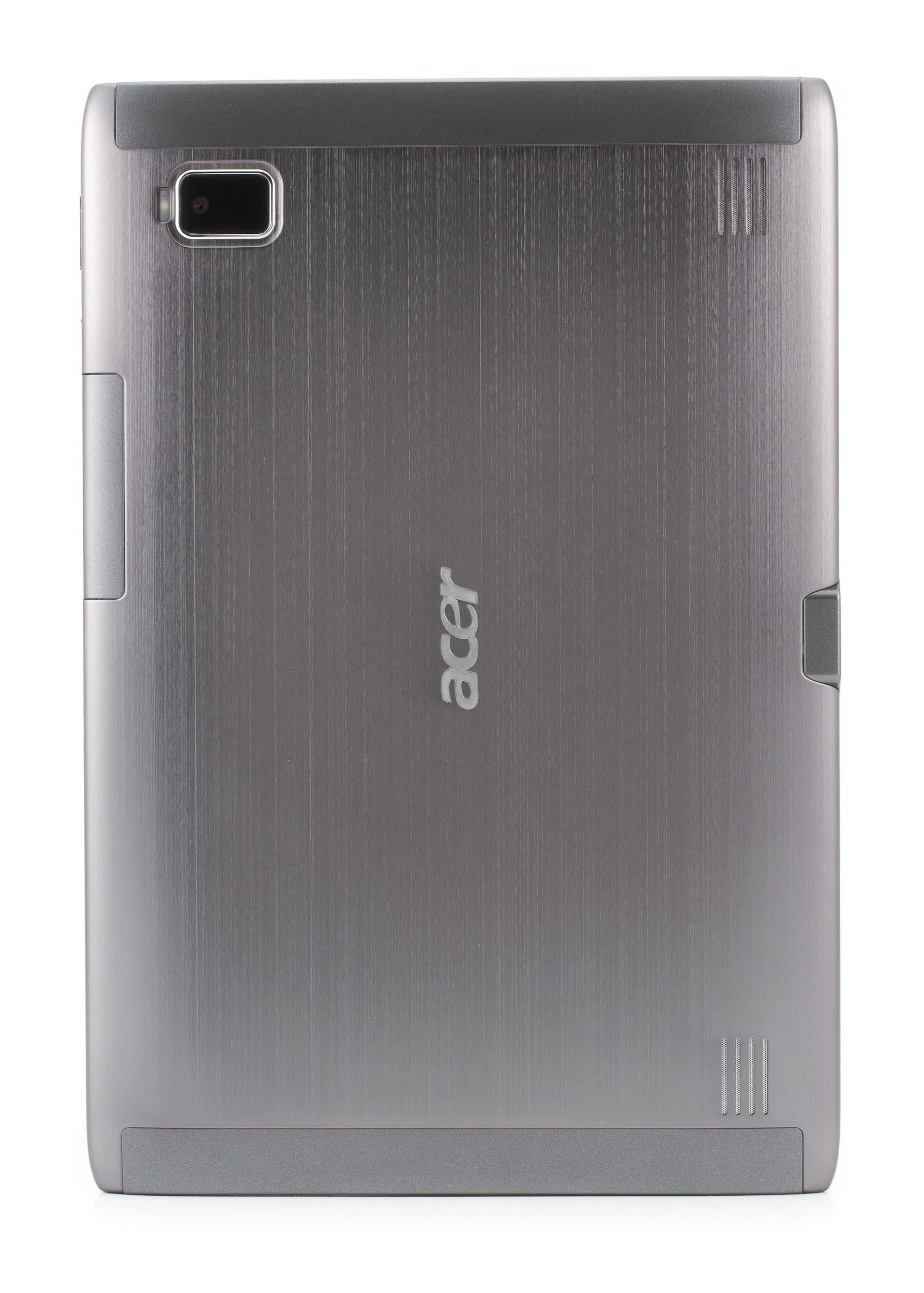 Корпус имеет скругленные верхнюю и нижнюю грани, немного скруглены и все углы устройства. Эти грани, а также вся задняя поверхность выполнены из металла, покрашенного в бронзовый цвет. В центре задней крышки красуется логотип Acer. Снизу около левого и правого углов расположены динамики, около верхнего правого угла — камера и вспышка.