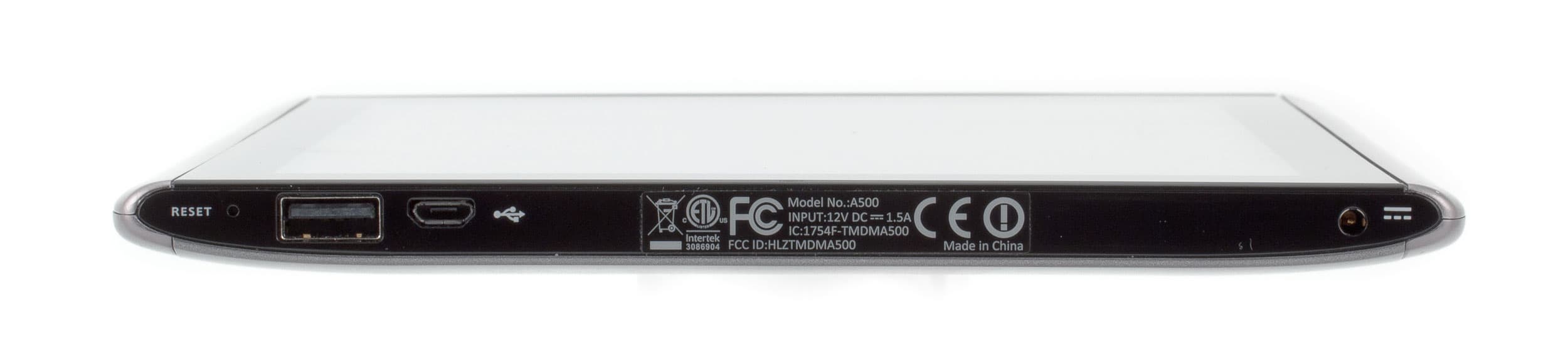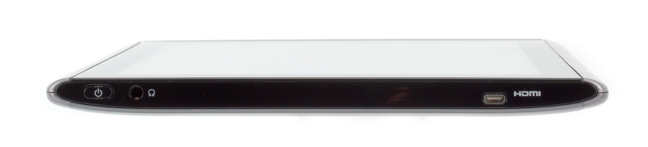 На правой грани размещены следующие разъемы (сверху вниз): питания, Micro-USB и полноценный порт USB (с поддержкой USB-host), а также кнопка Reset. Снизу — только док-коннектор (для аксессуаров), слева — Micro-HDMI, стандартный разъем для наушников и кнопка включения/выключения.