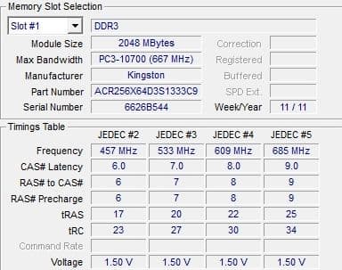 | Оперативная память | 4 ГБ, до 8 ГБ, 2 слота 2×2 ГБ DDR3-1333 DDR3 SDRAM (8-8-8-22 @ 609 МГц) (7-7-7-20 @ 533 МГц) (6-6-6-17 @ 457 МГц) (5-5-5-14 @ 380 МГц) | |