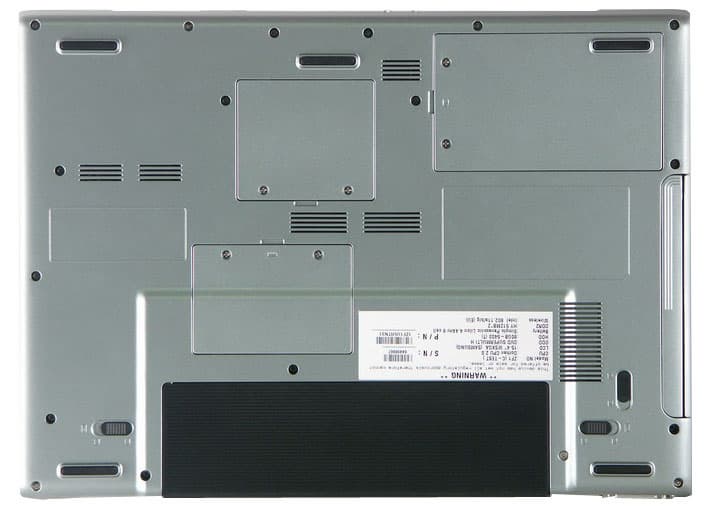 На днище защелки аккумуляторной батареи и отсека сменных устройств, а также лючки отсеков плат mini-PCI, жесткого диска и модулей памяти.