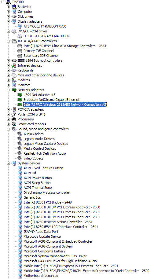 - Встроенный адаптер беспроводной связи Intel® PRO/Wireless 2915ABG 802.11a/b/g