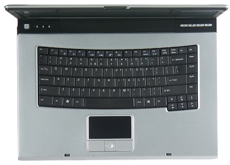 «Внутри» сочетание классики и современности. Классика это традиционная для моделей TravelMate изогнутая клавиатура. Правда, как форма клавиатуры, так и раскладка поменялись. Форма стала более строгой, а раскладка более удобной. Наконец появился традиционный правый столбец клавиш, куда перекочевали PgUp, PgDn, Home и End. Освободившиеся места в курсорном блоке весьма оригинально заняты символами доллара и евро. Современность общее решение «рабочей поверхности» и тачпэд, аналогичные использовавшимся на модели TravelMate 3200. Как я уже писал, новая форма тачпэда не привела к ухудшению эргономики.