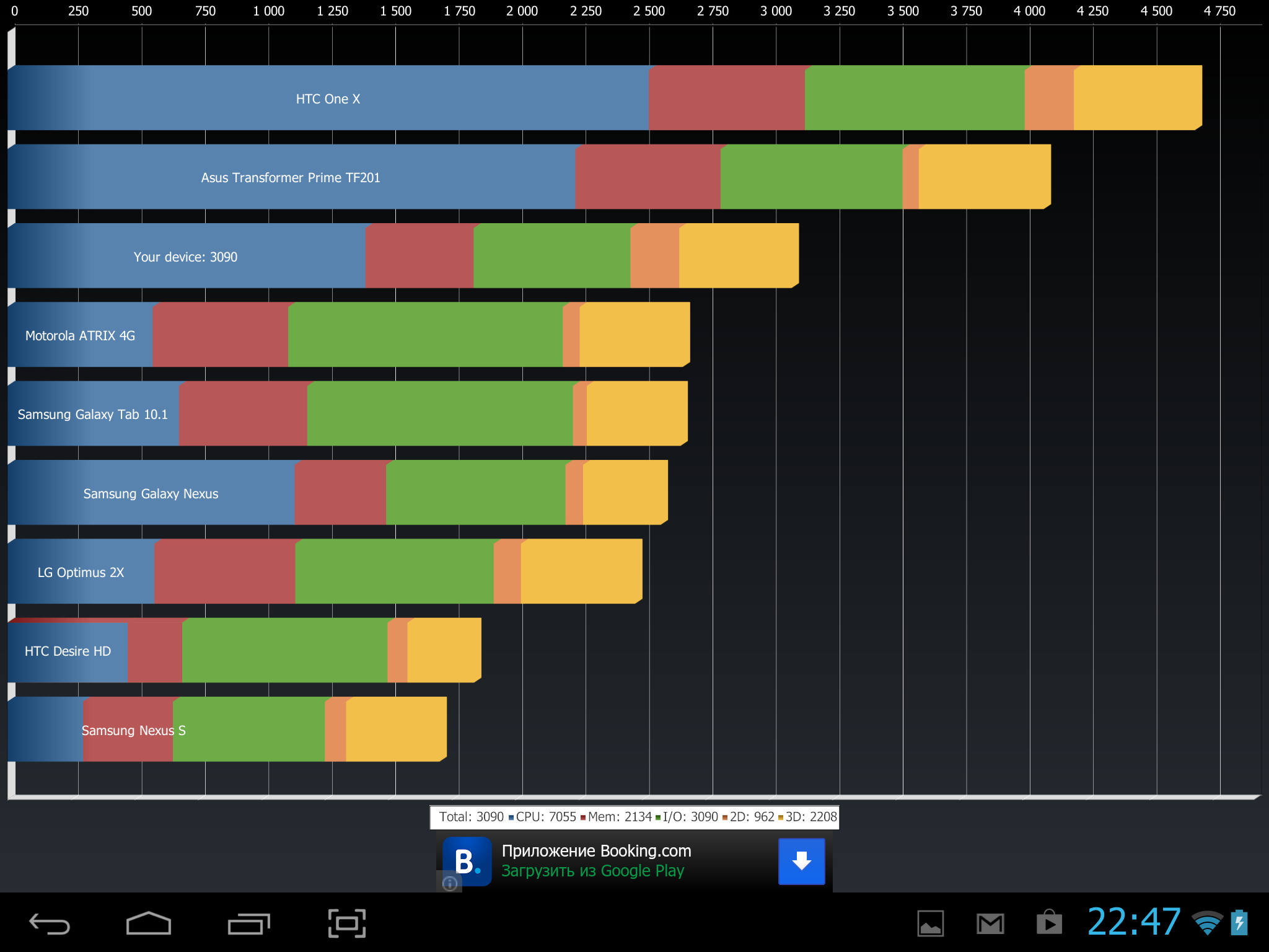 На фоне конкурентов этот результат выглядит тоже очень достойно. Для сравнения, в таблицу внесены результаты ASUS Transformer Pad Infinity и Samsung Galaxy Note 8.0 (на данный момент — самый высокопроизводительный планшет Samsung).