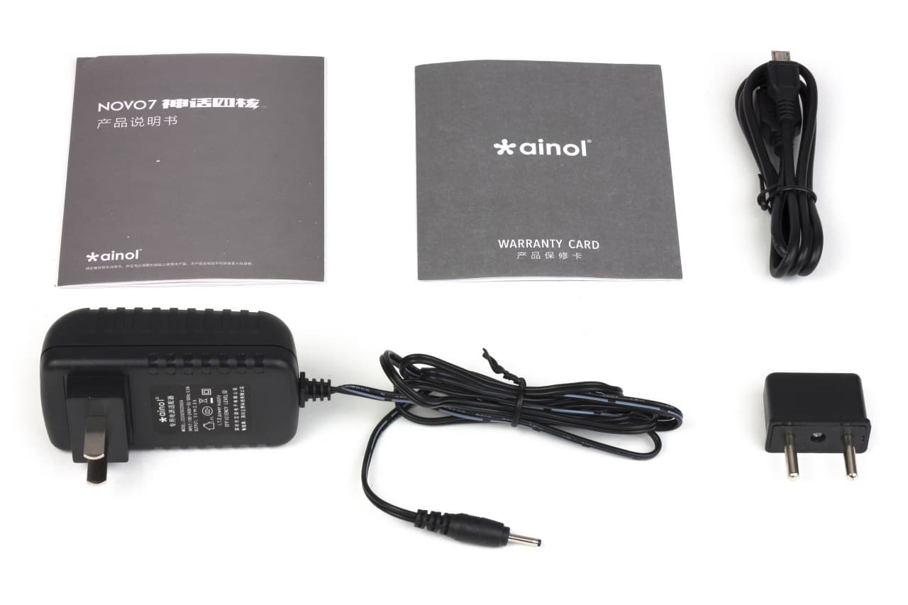 Комплектацию Ainol Novo 7 Venus можно смело оценить как минимальную. Впрочем, это именно базовая комплектация, и конкретный продавец может прилагать в комплекте какие-нибудь бонусы.