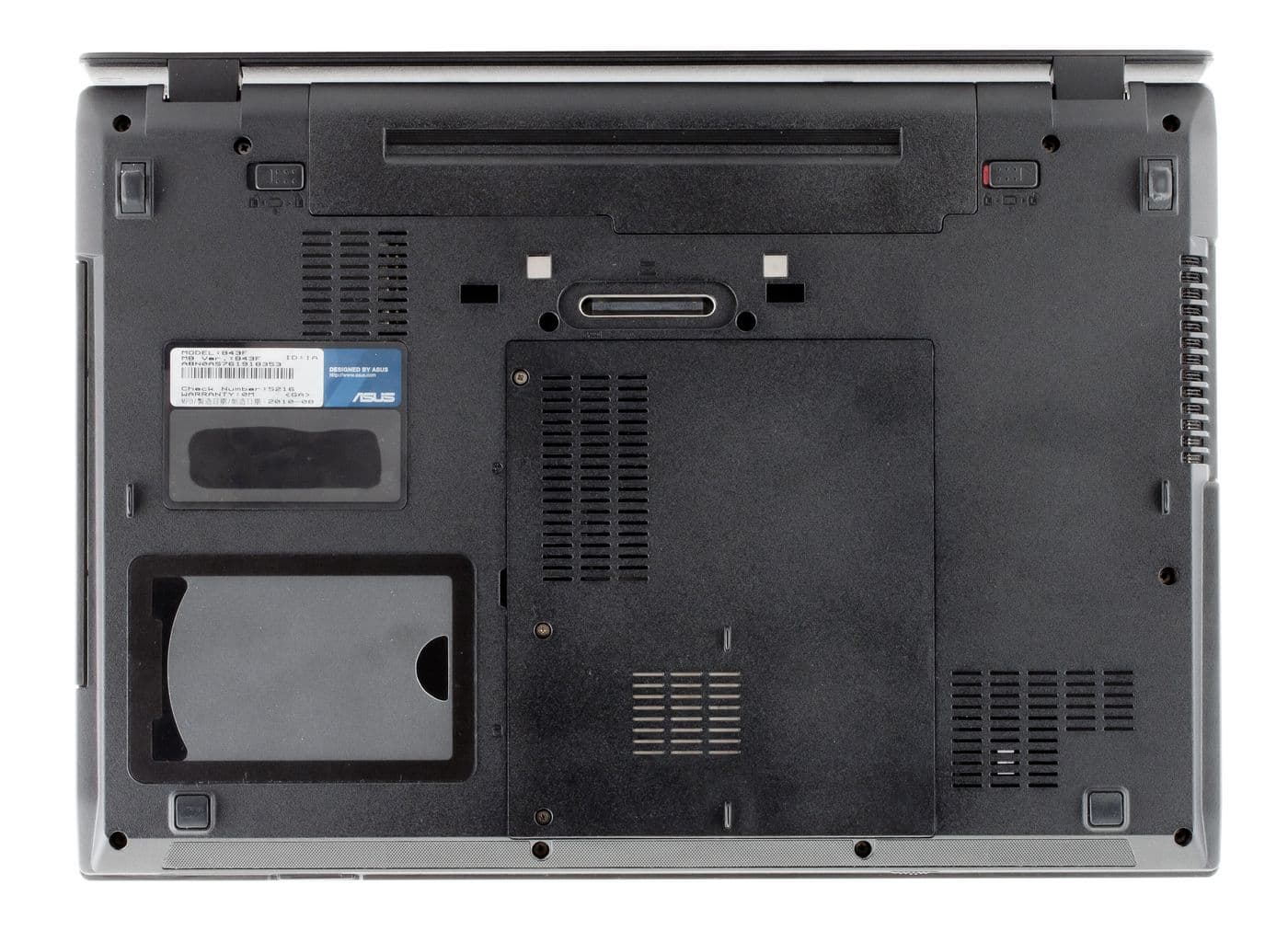 В серии В компания ASUS всерьез поработала над прочностью корпуса. Когда берешь в руки ASUS В43, первое ощущение — ого! Корпус и вправду очень прочный. Крышка металлическая, из полированного алюминия. Низ сделан из пластика, но даже если давить очень сильно, нижняя крышка не играет, пластмасса стоит ровно и не прогибается. Сдавить корпус тоже не получается. Корпус чуть-чуть прогибается, только если сильно надавить на центр клавиатуры, но и тут ничего сколь-нибудь заметного.