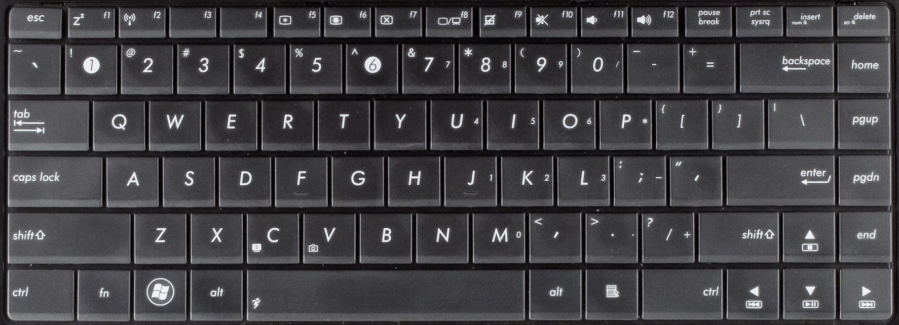 Раскладка клавиатуры близка к оптимальной. Откровенно неудобно расположенных клавиш на ней просто нет. Курсор вдвинут в клавиатуру, но так как клавиша «вправо» является угловой, то найти курсор на ощупь относительно просто. Клавиши курсора крупные, соседние клавиши задеваешь редко. Клавиши надкурсорного блока расположены вертикальной линией в правом углу клавиатуры. Del тоже в углу клавиатуры, его легко найти вслепую.