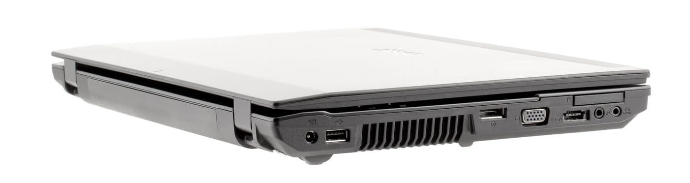 Рядом с ним расположен порт USB, а далее идет довольно большая решетка вентиляции. С другой стороны от нее находится DisplayPort. Этот разъем часто встречается на корпоративных моделях и вообще рассматривается как профессиональный. Рядом с ним — аналоговый видеовыход VGA. Ближе к передней грани расположен комбинированный слот eSATA/USB (пользоваться eSATA не очень удобно, толстый негибкий кабель будет торчать из передней части ноутбука), рядом с ним — аудиоразъемы (хорошо, что они здесь: если вставить наушники, ни штекер, ни провода не мешают при работе). Над этими разъемами находится слот Expresscard/33. Если в него вставлена сильно выступающая из корпуса карта, пользоваться другими разъемами может быть сложновато.