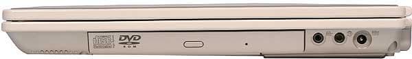 Слева опять-таки стандартный набор разъем PC Card, разъем IEEE1394 и окошко инфракрасного порта. Кроме этого, у модели S1N самой маленькой, заметьте здесь же находятся разъем для подключения блока питания, разъем для подключения AI-BOX (под крышкой) и два порта USB! И кто мешал сделать то же на больших моделях? Места-то достаточно. Особенно хорошо это заметно у M3N разъем замка Кенсингтона смотрится сиротливо. Да, сзади в этом углу расположен процессор с системой охлаждения, я понимаю. Да, у S1N абсолютно голый правый торец, к которому можно сместить всю начинку это я тоже понимаю. Но не найти места на боковинах для порта USB все-таки не понимаю. Это не ругань в адрес ASUS это обращение к производителям ноутбуков вообще.