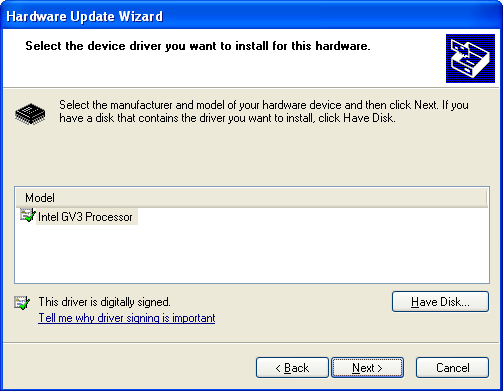 Итак, система должна определить новый (для нее неизвестный) процессор. Для этого служит HotFix Q332179 Но установить его не так просто автоматически это не получится. Так что придется выбирать драйвер вручную из списка (для английской версии Update Driver > Install from a list or specific location > Don't search. I will choose the driver to install > Have disk). И наконец получаем заветную картинку.