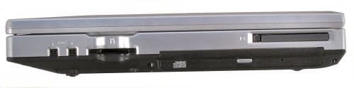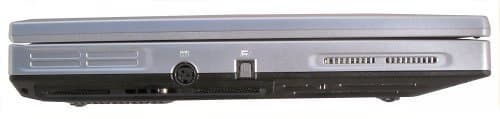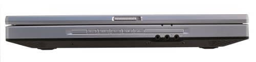 Зато на правой стороне некотороое оживление: тут и слот PC-CARD с CD-драйвом, расположенные «в два этажа», тут и универсальный картовод, тут и два порта IEEE 1394. В общем, правая сторона богата на разные разъемы и интерфейсы Соответственно, если вы правша вам удобно будет перетыкать эти разъемы.