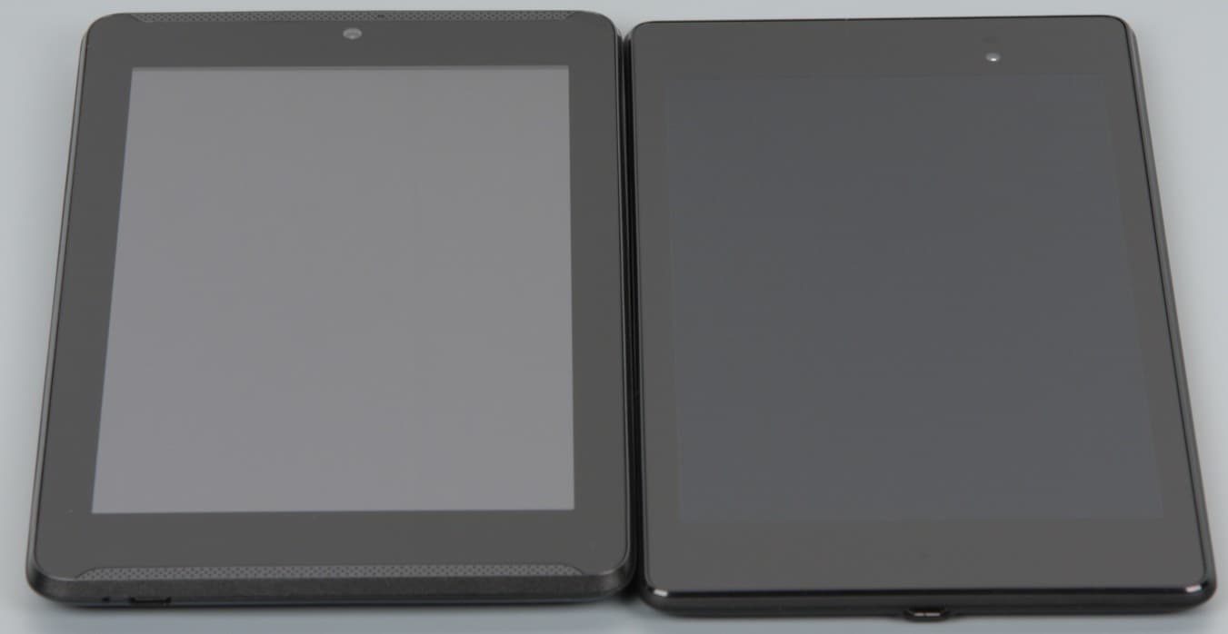 Видно, что цветопередача немного различается (у Nexus 7 цвета поярче), но это единственный вывод, который можно сделать по фотографии. И белое поле: