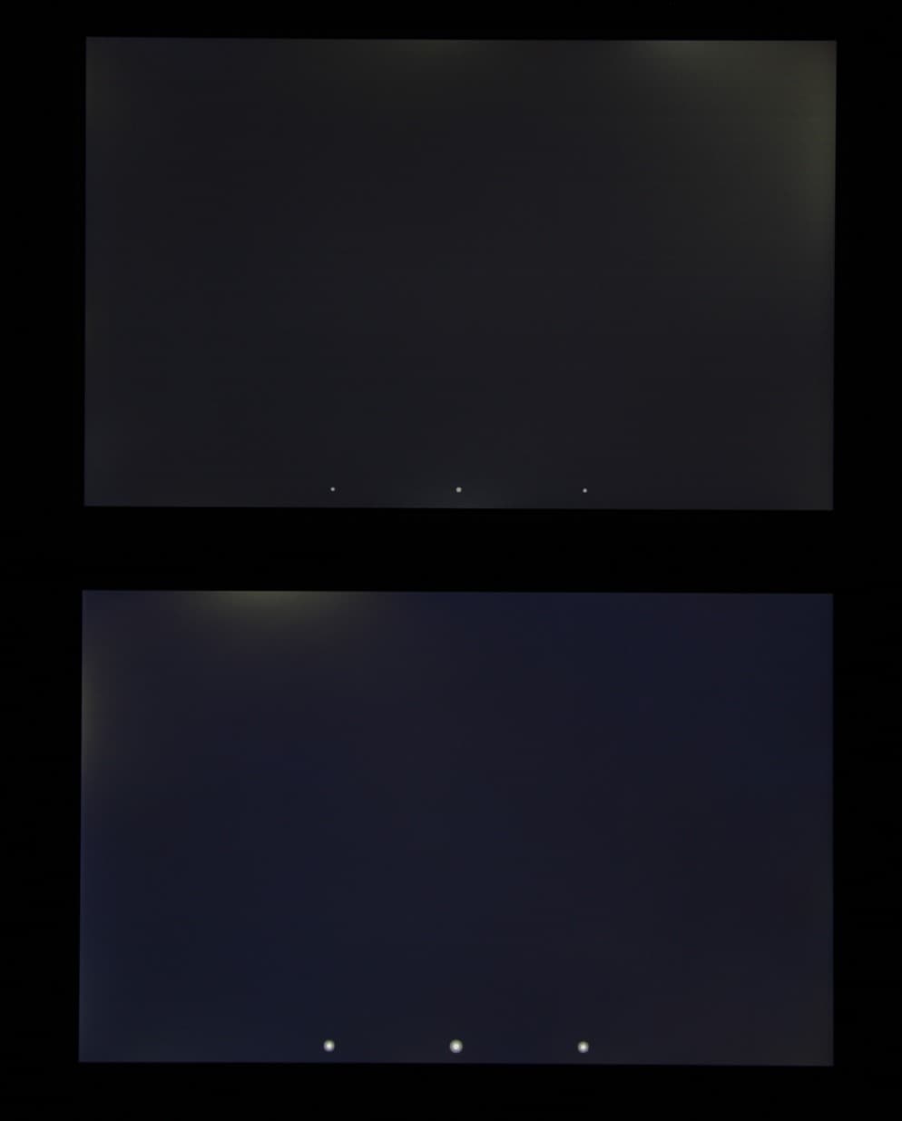 При перпендикулярном взгляде равномерность черного неидеальная, так как ближе к краю есть участки с немного с повышенной яркостью черного: