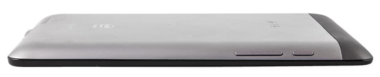 Семидюймовый дисплей планшета имеет широкую черную рамку. Внизу расположен логотип производителя, напротив него — телефонный динамик и камера. Короткие стороны рамки дисплея утолщены; длинные — сужены.