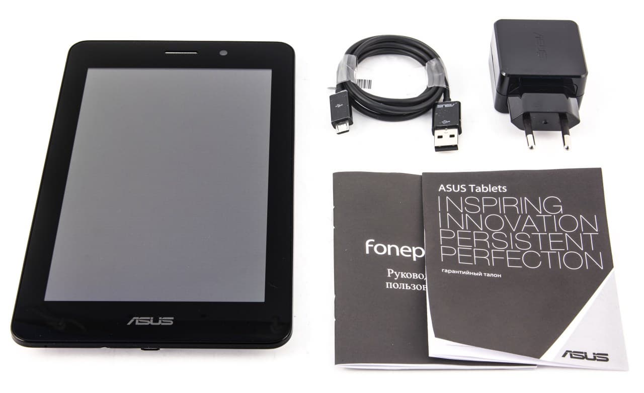 В небольшой коробке с ASUS Fonepad также нашлось место для USB-адаптера, кабеля Micro-USB, инструкции и гарантийного талона.
