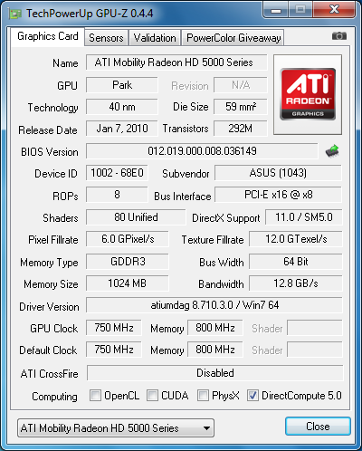 Видеокарта на процессоре Radeon HD 5470 работает на штатных частотах, причем и для видеопамяти тоже, что довольно ценно, поскольку модели с увеличенным объемом памяти зачастую ради экономии оснащаются более дешевыми и медленными чипами памяти.