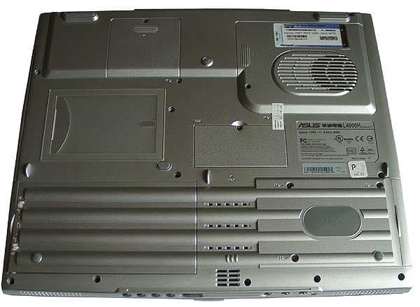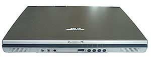 Динамики на переднем торце тоже привычный атрибут ноутбуков ASUS. В данном случае такое их расположение позволяет прослушивать музыку при выключенном компьютере с использованием блока управления проигрыванием компакт-дисков. Вообще, у модели L4H передний торец «отвечает» за звук разъемы Microphone-in, Line-in и Headphone/S/PDIF расположены здесь же.