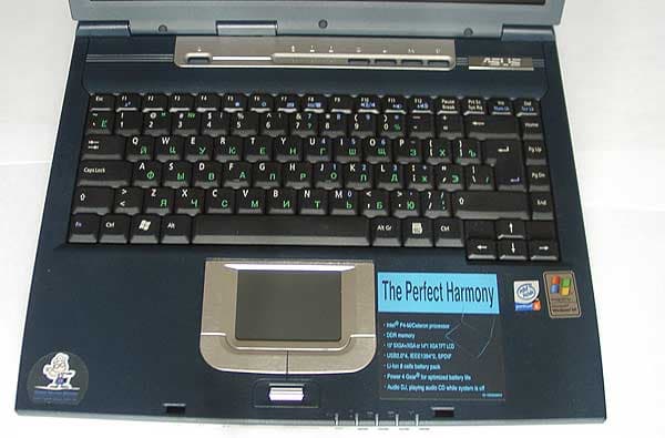 Под крышкой тоже ASUS :) Что, в общем-то, неудивительно. Сразу бросается в глаза необычное решение тачпэда вместо клавиш скроллинга здесь используется колесико.