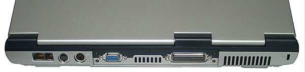 На заднем торце разъемы, используемые при «стационарном» размещении ноутбука. Слева направо