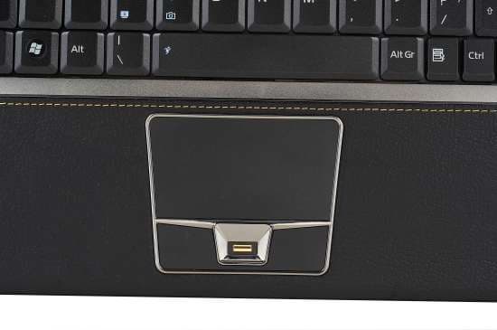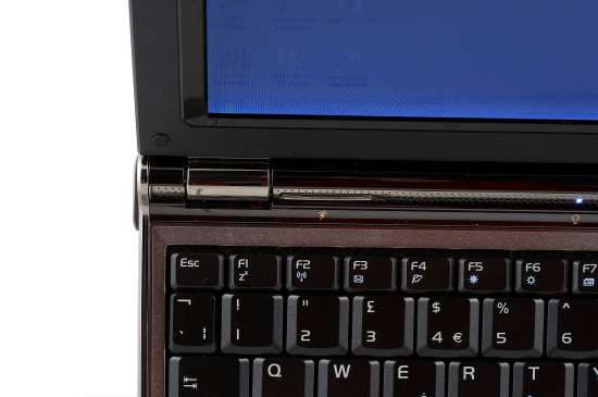 Открытый ноутбук выглядит отлично: стильно и дорого, именно так, как должен выглядеть ноутбук этого класса. Сочетание кожи, вороненого металла вокруг клавиатуры и карбона производит очень выигрышное впечатление. Кстати, у VX3 клавиши не обычного черного цвета, а черно-серые «с искрой». Клавиатура смотрится гораздо лучше, чем обычная черная пластмасса и очень хорошо гармонирует с корпусом ноутбука.