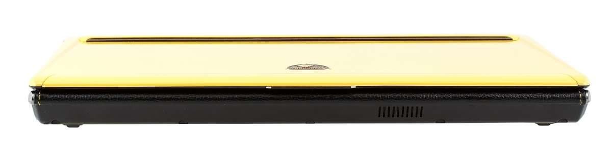 Крышка бывает двух фирменных цветов Lamborghini — черного и желтого. Она стилизована под капот спортивного автомобиля с решеткой воздухозаборника, и на ней красуется эмблема Lamborghini. В модели VX3 дизайнеры отказались от крышки «под карбон», теперь обе крышки покрашены и покрыты лаком. На тестировании была модель с желтой крышкой, такой ноутбук выглядит очень ярко и привлекает к себе внимание. О черной модели ничего сказать не можем, но, думаем, она смотрится спокойнее.
