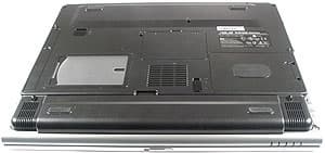 В передней части днища расположены динамики, между ними аккумуляторная батарея. Крышка отсека жесткого диска снабжена амортизатором.