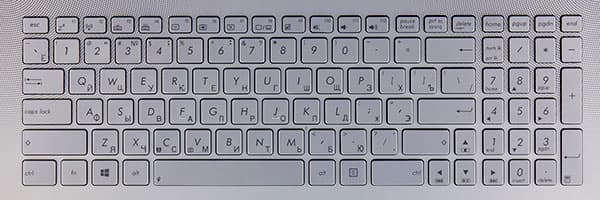 В ноутбуке Asus N750JV-T4008H используется уже ставшая традиционной для современных ноутбуков клавиатура островного типа с увеличенным расстоянием между клавишами. Имеется отдельный цифровой блок.
