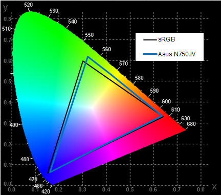 В ноутбуке Asus N750JV-T4008H используется ЖК-матрица Chi Mei N173HGE со светодиодной подсветкой на основе белых светодиодов. На неофициальном сайте Asus утверждается, что ноутбук оснащен IPS-матрицей. Это не соответствует действительности: Chi Mei N173HGE относится к типу TN-матриц. В данном случае матрица имеет матовое антибликовое покрытие, видимая область экрана составляет 382×215 мм при диагонали 17,3 дюйма, а разрешение составляет 1920×1080 точек. Отметим, что данный экран не сенсорный.