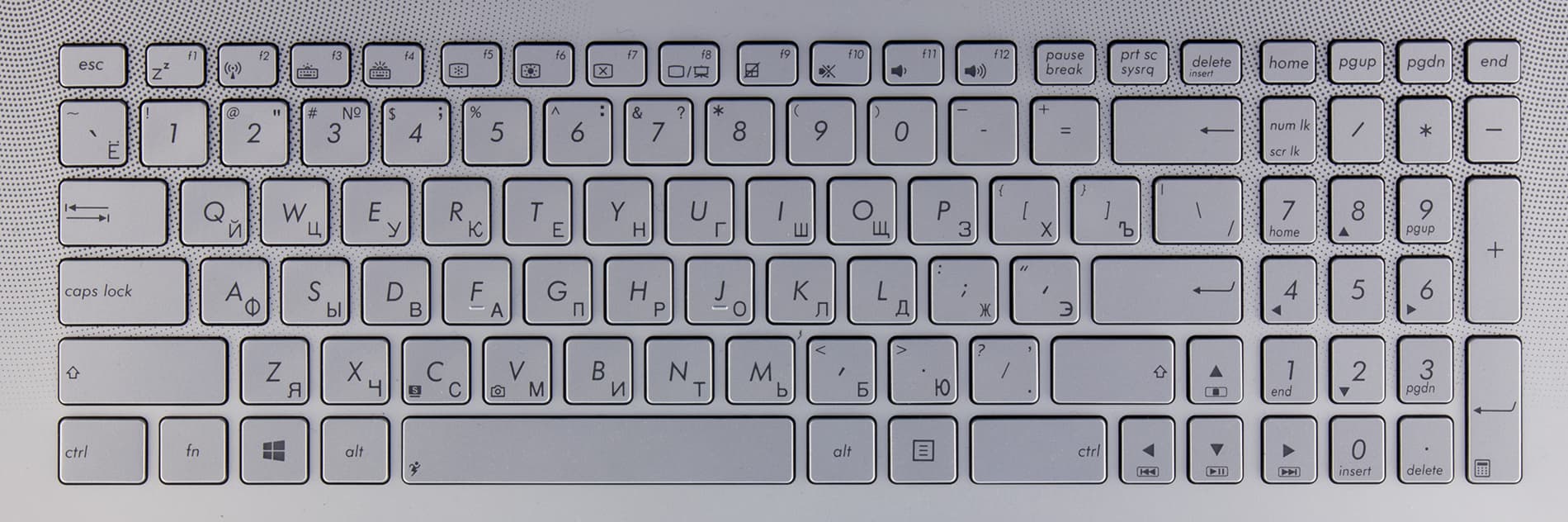 Верхний ряд клавиш стандартно имеет две функции: либо традиционные F1—F12, либо функции управления ноутбуком; один набор работает напрямую, второй — в сочетании с функциональной клавишей Fn.