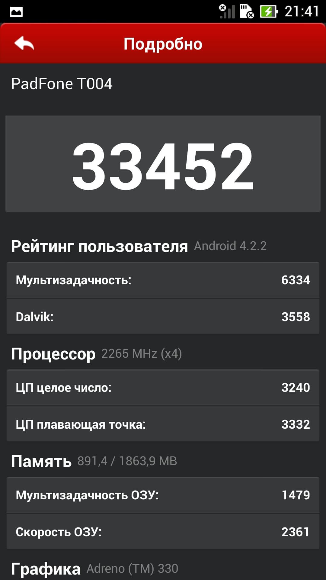 Приводим скриншоты с подробными результатами Asus The new Padfone Infinity.