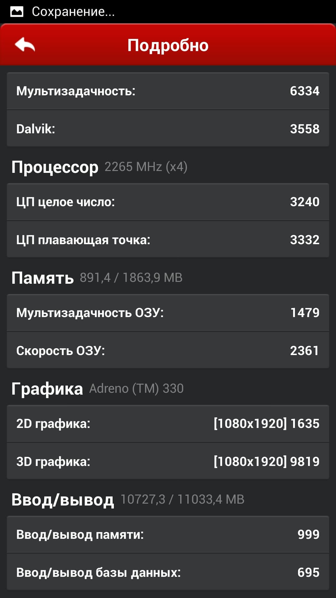 Идем дальше. Мультиплатформенный бенчмарк Geekbench 3 призван показать производительность CPU и RAM. Мы приводим результаты для одноядерного и многоядерного режимов (баллы указаны через слэш).