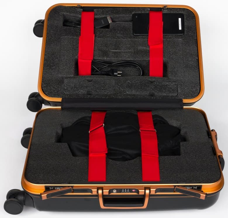 Ноутбук Asus ROG GX800VHK, как и его предшественник Asus ROG GX700VO, поставляется в комплекте с пластиковым чемоданом на четырех колесиках, с выдвижной ручкой и кодовым замком. На чемодане имеется принт с логотипом Asus ROG и надписью «The choice of champions» («Выбор чемпионов»).