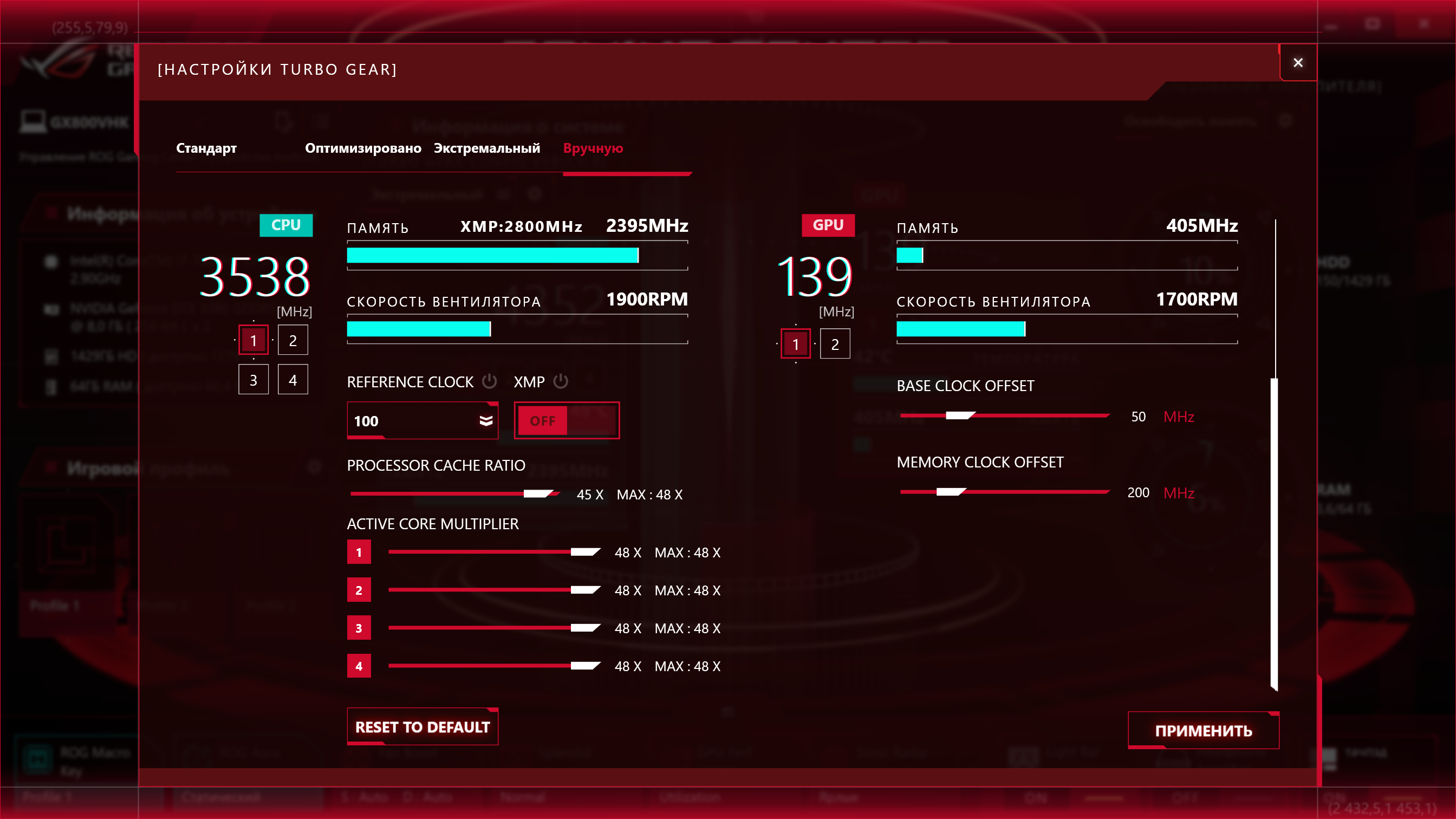 В нашем случае конфигурация ноутбука Asus ROG GX800VHK была следующей: