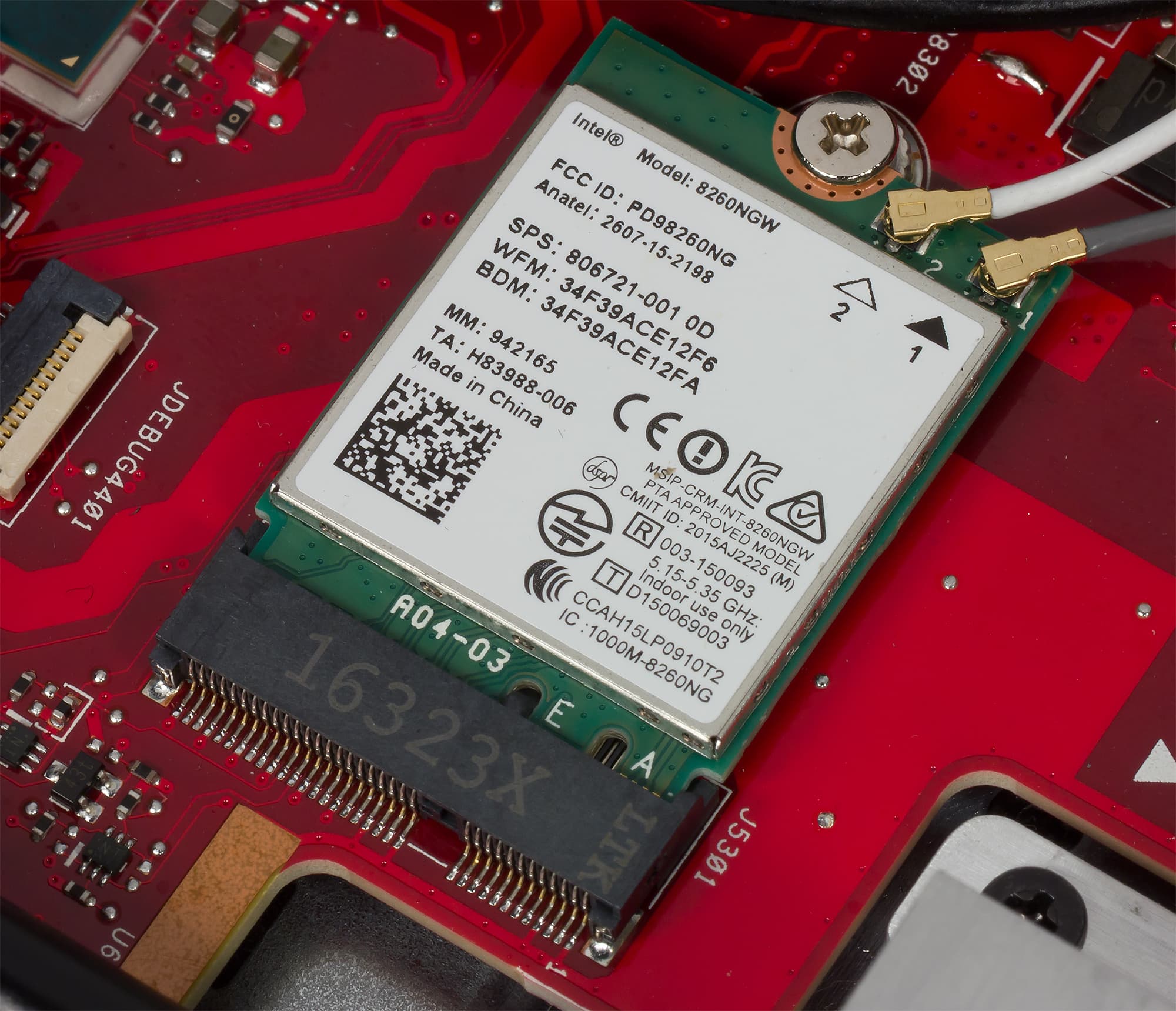 Коммуникационные возможности ноутбука определяются наличием беспроводного двухдиапазонного сетевого адаптера Intel Dual Band Wireless-AC 8260, который соответствует спецификациям IEEE 802.11a/b/g/n/ac (максимальная скорость 867 Мбит/с) и Bluetooth 4.1.