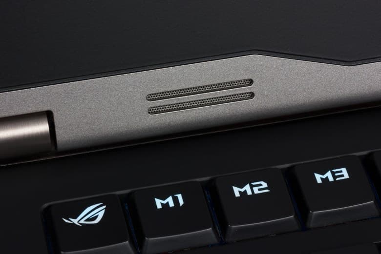 Аудиоподсистема ноутбука Asus ROG GX800VHK основана на HDA-кодеке Realtek ALC286, в корпусе ноутбука размещены четыре динамика, плюс есть два аудиоразъема типа миниджек.