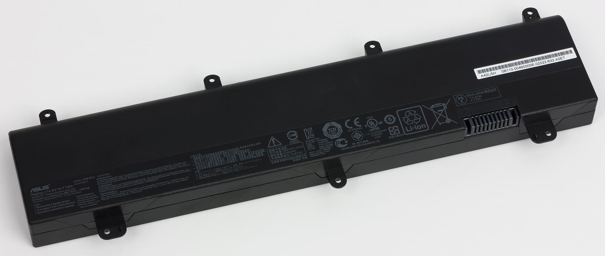 Конечно, в ноутбуке имеется несъемный 8-элементный аккумулятор емкостью 71 Вт·ч (4750 мА·ч).