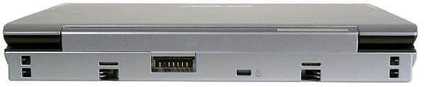 Сзади на корпусе отверстия для крепления аккумуляторной батареи, разъем для ее подключения и разъем для замка Кенсингтона. Таким образом, «пристегнутый» может работать только от сети переменного тока.