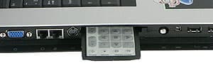 Исключительно удачно решена проблема хранения пульта при транспортировке он размещается в отсеке PC Card, для чего на одном торце пульта даже выполнена имитация разъема. Так что, беря ноутбук в дорогу, можно не беспокоиться о том, как бы не забыть пульт. А для стационарного использования в качестве опции предлагается «полномасштабный» пульт.