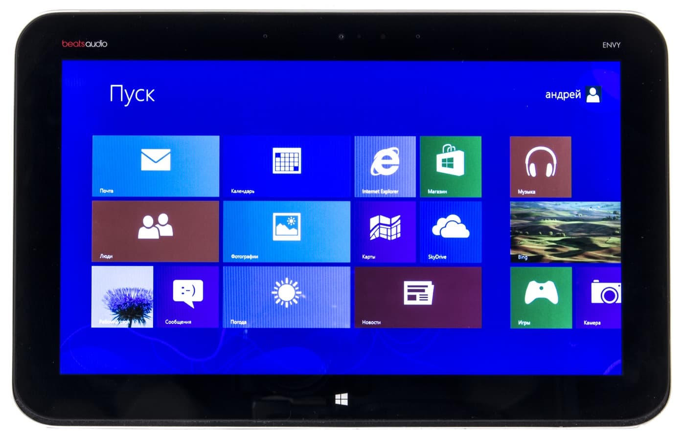 Экран у Envy X2 чуть крупнее конкурентов, его диагональ 11,6 дюймов при соотношении сторон 16:9. Разрешение стандартное для этого класса, 1366×768, технология матрицы тоже стандартная — IPS. В принципе, на рынке уже потихоньку начинают появляться экраны с такими же характеристиками, но разрешением 1920×1080, однако в следующее поколение планшетов на Atom они, скорее всего, не попадут из-за относительно высокой стоимости. Хотя в условиях жесткой конкуренции производители могут пойти и на такой шаг.