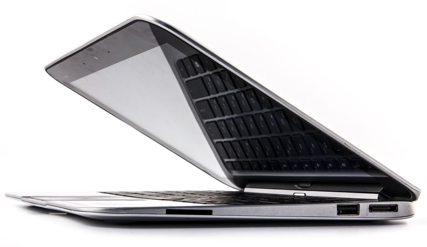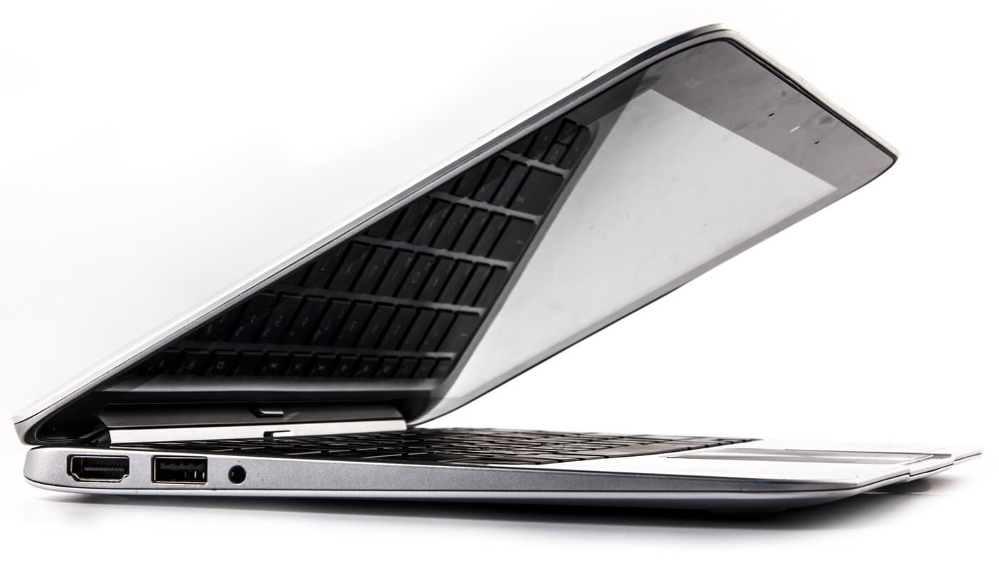 Максимальный угол открытия крышки очень небольшой — где-то 100-110 градусов. Этого хватает, когда HP Envy X2 стоит перед вами на столе, но если поставить его на колени, то работать с экраном будет неудобно. Впрочем, на коленях его вообще держать сложно хотя бы из-за того, что планшетная часть тяжелая, и он постоянно норовит опрокинуться назад.