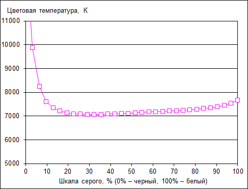 Цветопередача неплохая, но при сравнении с более качественным экраном цвета слишком «холодные». Цветовое пространство у́же, чем sRGB.