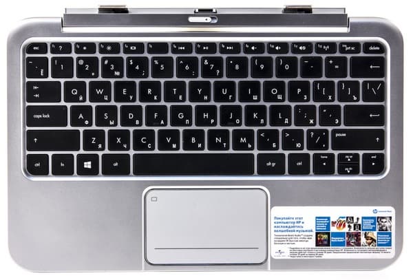 Устройств ввода здесь три: тачскрин на планшете, клавиатура и тачпад на клавиатурном блоке. С какими-либо проблемами у тачскринов я пока не встречался, все работают хорошо. Не стал исключением и HP Envy X2. Более того, во многих ситуациях тачскрином удобно пользоваться даже в режиме ноутбука: поднял руку с клавиатуры, нажал на нужную кнопку на экране, да и продолжил работать.
