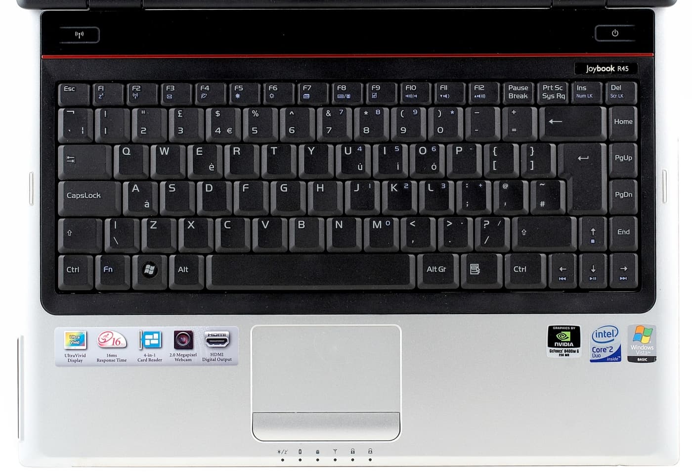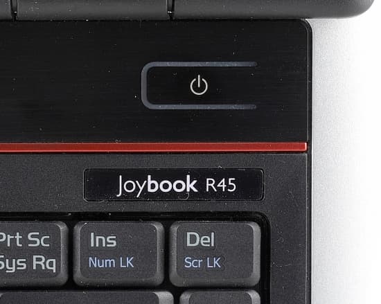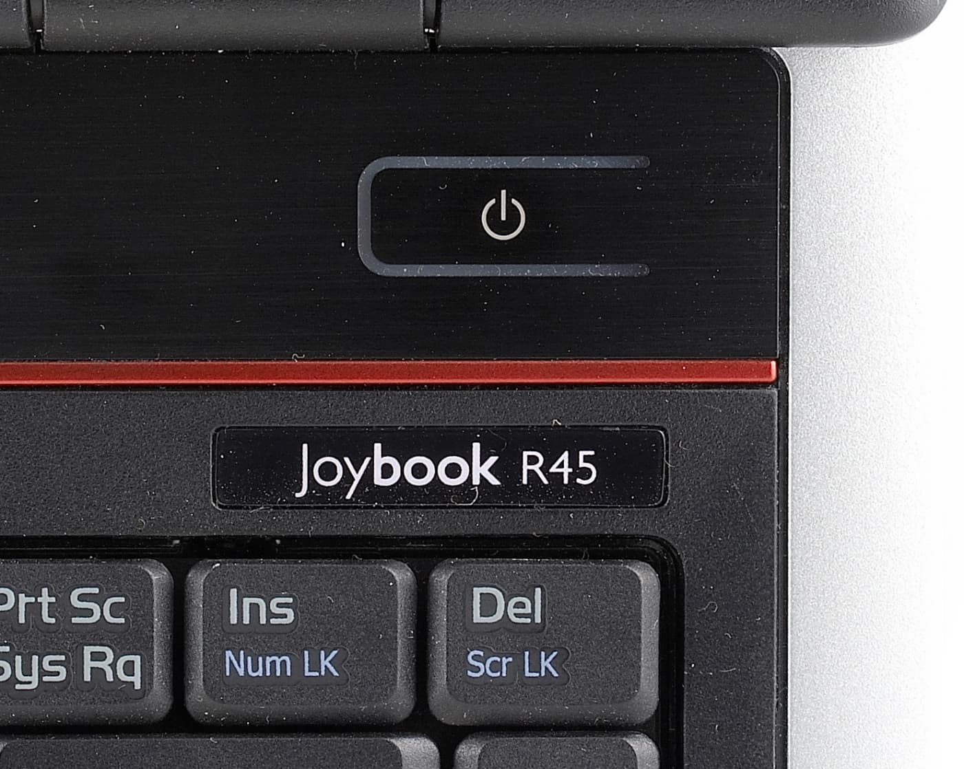 Что касается дополнительных клавиш, их у Benq R45 две, обе расположены над клавиатурой. Одна включает питание ноутбука (при этом загорается красным каемка вокруг клавиши).