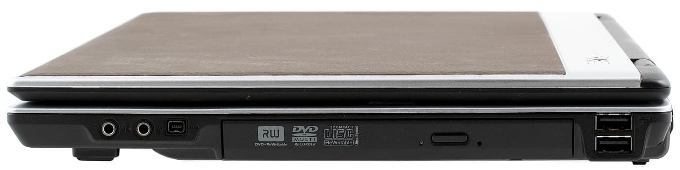 На правой грани расположены аудиоразъемы и порт FireWire, дальше идет оптический привод DVD-multi и 2 порта USB 2.0.