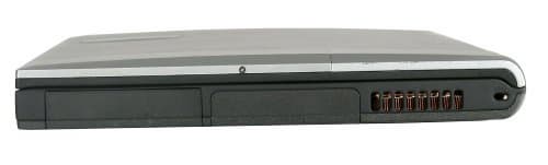 На правой стороне у нас тихо. Пожалуй, единственным значимым для этого раздела элементом является слот для замка Кенсингтона. Тут же решетка системы вентиляции (выхлопная), крышка отсека для жесткого диска и батарейного отсека. Странно, зачем выводить разъемы на заднюю стенку, а более доступную боковую делать вообще пустой?
