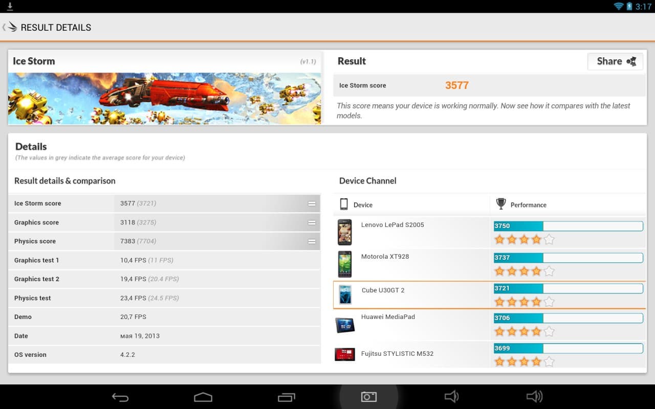 3DMark Ice Storm поставил нашего героя на строчку выше Huawei MediaPad, в чем нет ничего удивительного.
