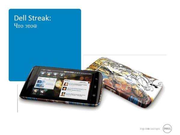 Внешне Dell Streak выглядит очень большим, поэтому совсем не воспринимается как телефон. Это скорее гибрид телефона и планшета с 5-дюймовым экраном. Насколько удобно им пользоваться, пока вопрос открытый: представители компании секретничают и на тест его не дают, а их собственные впечатления сугубо положительные, впрочем, на пресс-конференции другую позицию было бы удивительно видеть.