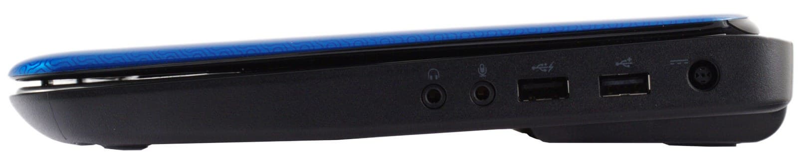 Разработчики не стали пользоваться возможностью разместить на освободившемся месте на боковинах побольше разъемов, так что набор их стандартный. Вместе с тем, смещенные ближе к задней панели, разъемы для наушников и микрофона заслуживают положительного упоминания. Никакие кабели не будут мешать вам возить мышкой по столу, во всяком случае, если вы правша.
