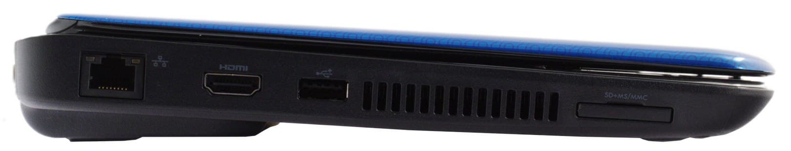Очень непривычно видеть на задней панели компактного ноутбука какие-либо разъемы. Но почему бы и нет, раз уж крышка не перекрывает заднюю панель при открывании?
